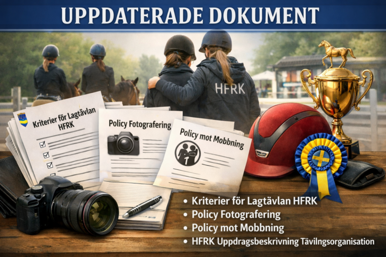 Helsingborgs Fältrittklubb har nu uppdaterat flera viktiga styrdokument som ligger till grund för vår verksamhet, våra tävlingar och vårt gemensamma arbete i föreningen.